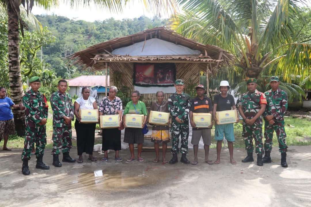Dalam rangka menyambut perayaan Natal yang penuh kasih dan kebahagiaan, bagi seluruh masyarakat di wilayah binaannya, Kodim 1709/Yawa menggelar Kegiatan Berbagi Bingkisan Natal yang diserahkan secara langsung kepada masyarakat di Kampung Turu, Distrik Yapen Selatan, Kabupaten Kepulauan Yapen, Kamis (19/12/2024).