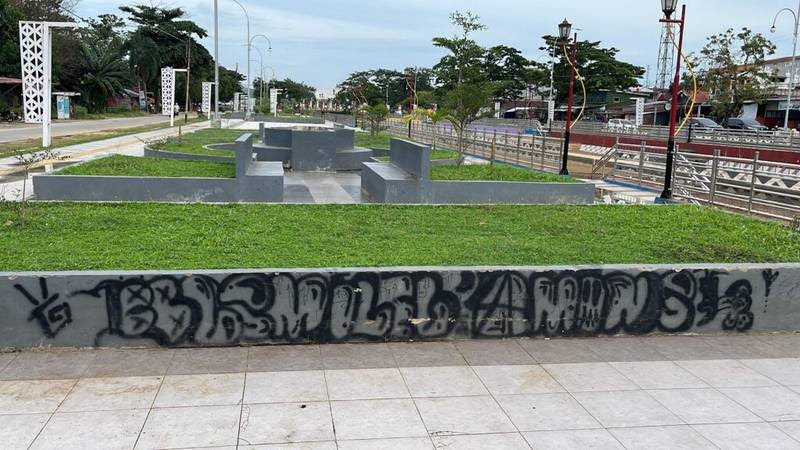 Sela, salah satu pengunjung di kawasan itu mengaku cukup terganggu dengan aksi vandalisme tersebut, karena membuat kesan kumuh pada taman yang belum lama diresmikan tersebut.